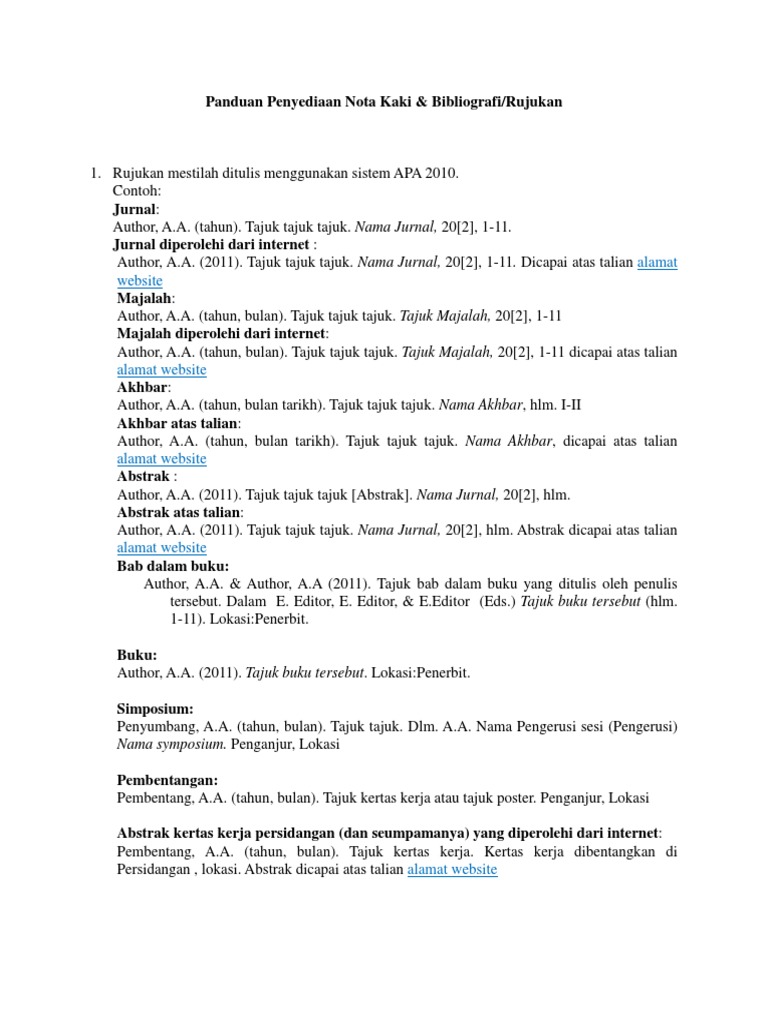 Panduan Menulis Format Nota Kaki Footnote Bibliografi Format Nota Kaki Footnote Notakaki Studocu