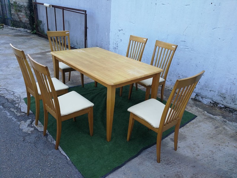 Meja Makan Kayu Getah Solid Rubber Wood Dining Set Table 1 6 Chairs Furniture Home Living Furniture Tables Sets On Carousell